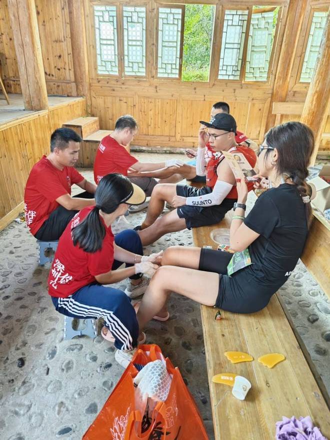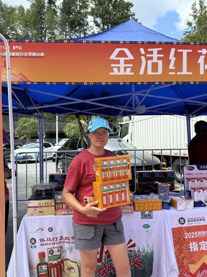 金活依马打正红花油是本次赛事官方指定外用药油,源自经典南洋中药配方,真正含有红花、血竭等名贵药材,具备活血散寒、消肿止痛的功效。针对龙脊梯田赛道“爬升高、路况复杂”的特点,金活依马打正红花油赛前可帮助跑者促进血液循环、降低肌肉拉伤风险;赛后,金活医药工作人员为每一位肌肉酸痛的跑者提供轻柔擦拭服务,缓解疲劳、消肿止痛。