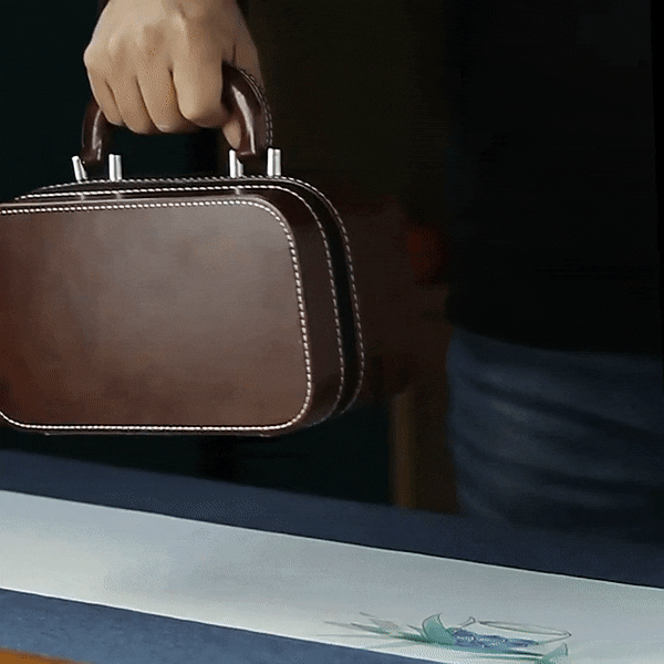 打开皮革小包,内含一壶一罐三杯,不仅能够泡茶品茶,还能够与友人共享茶之醇厚香浓滋味。