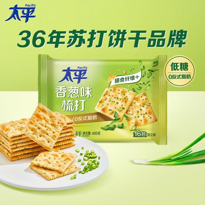太平苏打饼干 营养美味 香葱味400g 易消化含膳食纤维 零食早餐下午茶